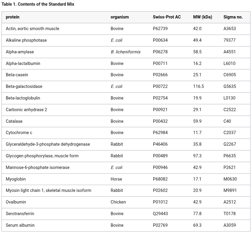 The native mass spectrometry files (Thermo raw) and mzXML conversions of these raw files are available for download. As noted in the table below, there are 6 dataset mixes available (curiously labeled 1, 2, 3, 4, 7, 8).
